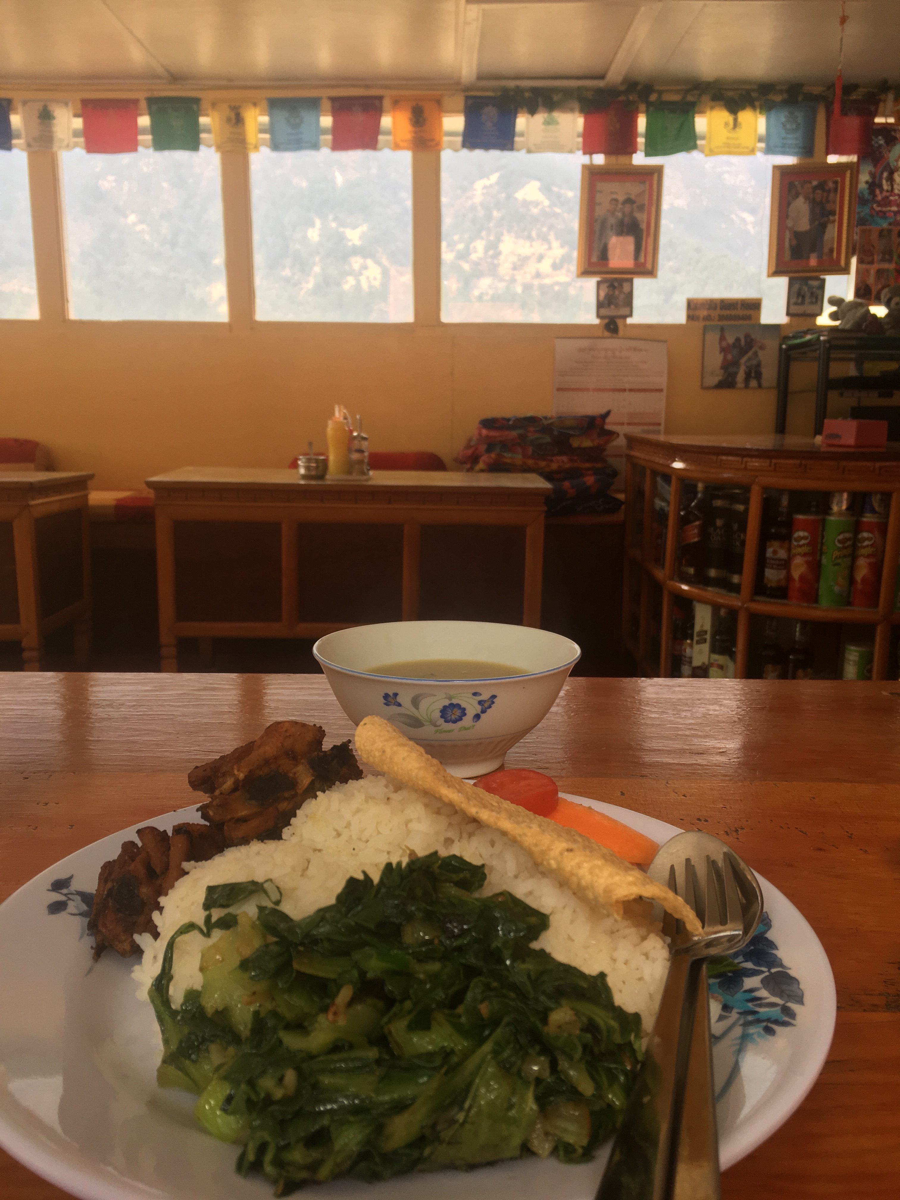 When in the Himalayas, staying at tea houses and guest lodges means that you’re going to see 99% of the same menus everyday. It’s a must to become accustomed to eating Dal Bhat!