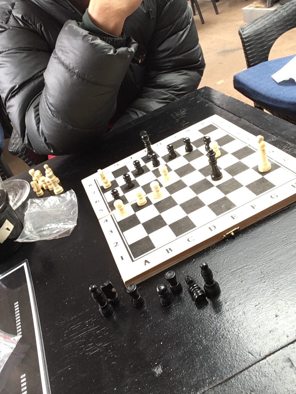 - We weren’t quite hungry as we arrived so we went across the road and took refuge in a cafe, had some tea and played chess.