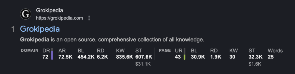 This alone already puts Grokipedia ahead of 99.9% of AI-generated content projects that never escape the “indexed but invisible” stage.