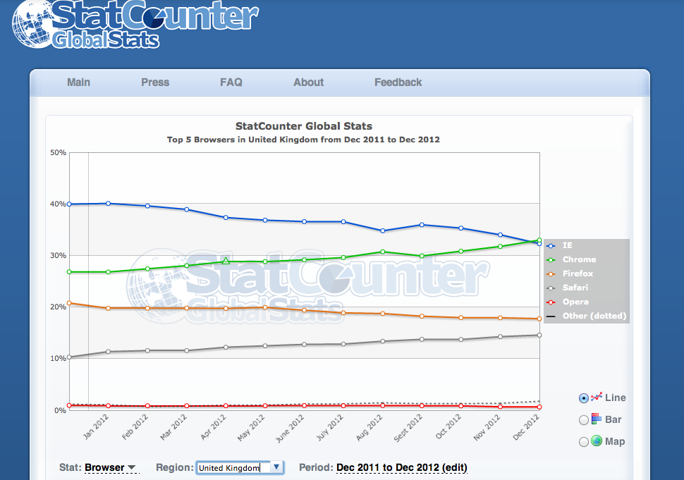 As of recently, Internet explorer is no longer the #1 internet browser in the UK. Research shows that google chrome has now slightly surpassed Microsofts dominating commercial browser. Web designers rejoice!